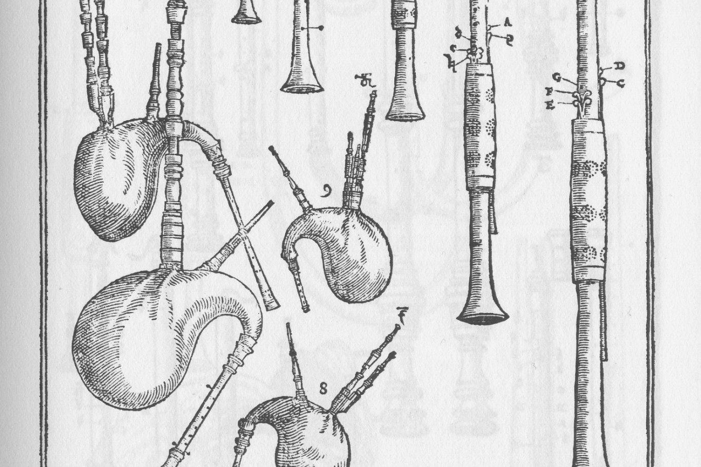 Dudelsäcke (z.B. Hümmelchen, Schäferpfeifen), Drehleier, Nyckelharpa, Blockflöten, Rauschpfeife und Gemshörner. Aber auch mehrstimmiger Gesang, begleitet von Laute und Cister, runden das Programm ab.